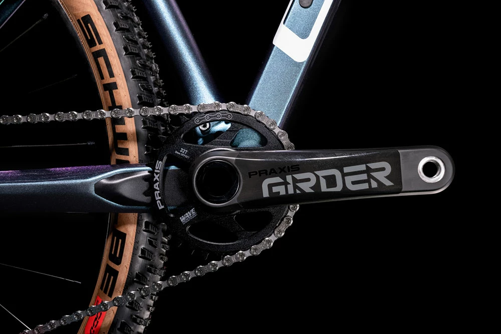 Shimano’s legendary XT 1×12 gears give you the ratios you need to tame any trail via a Praxis Girder Carbon crank, and a light and strong Newmen Evolution wheelset is the icing on the cake. It looks fast and – with you on board – it is fast.