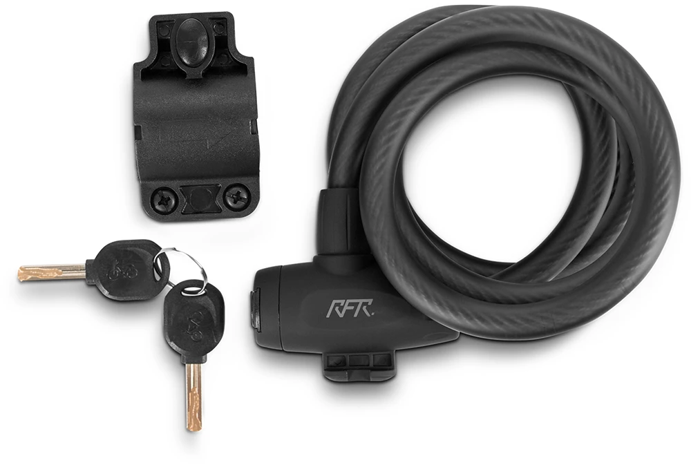 Antivol à câble spiralé RFR très robuste avec un diamètre de câble de 12 mm et une longueur de 1500 mm. Le câble en acier et le corps de l’antivol sont protégés contre la corrosion et donc optimaux pour une utilisation quotidienne. Un cylindre de fermeture extra sûr offre une sécurité sans faille.